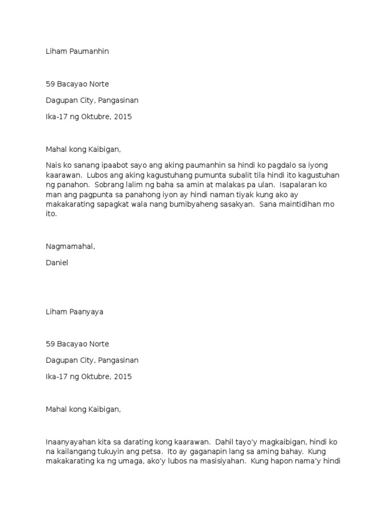 Hi your jajah letter to friend example ng liham.