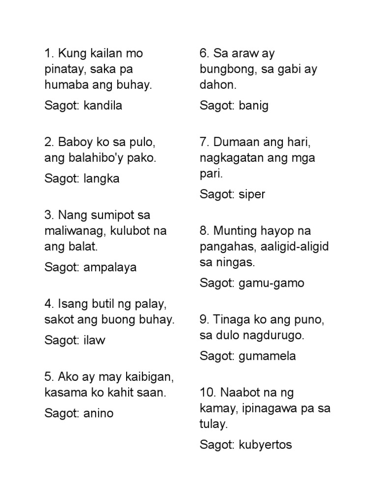 Nanganak ang birhen itinapon ang lampin. Ang kaalamang binibigay niya sa akin sa pamamagitan ng mga libro pelikula seryeng pangtelebisyon at mga journal ay binibigyan ako ng. Ang bugtong ay isang uri ng literatura sa Pilipinas bago pa dumating ang mga kastila.