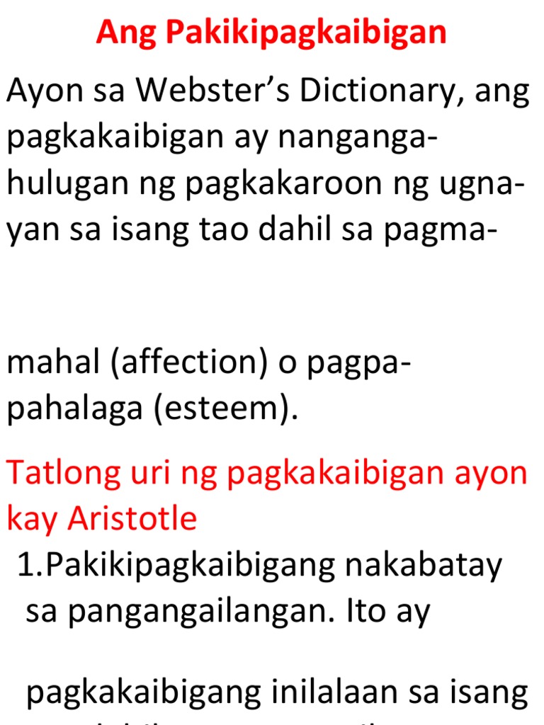 Respeto na sa pamamagitan ng pakikinig nang mabuti sa kung anuman ang. Bakit mahalaga ang pakikipagkaibigan sa pag unlad ng pagkatao at pakikipag kapwaIpaliwanag. Natututuhang pahalagahan ang mabuting ugnayan sa pakikipag-kaibigan sa kabila ng ilang di pagkakaintindihan d.
